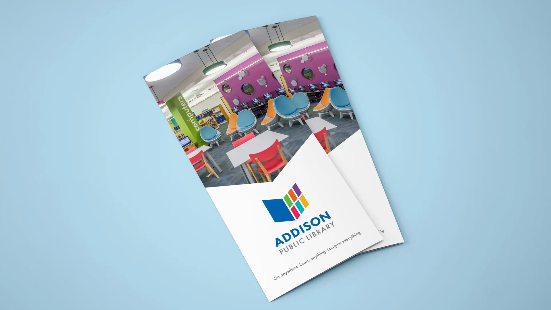 Addison Public Library requested a vibrant refresh of their brand and print material worthy of their engaging interior space.
